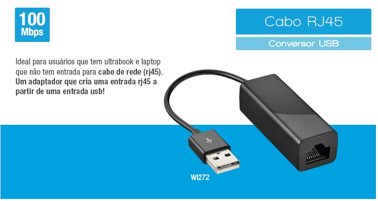 ATENÇÃO: Os preços ofertados no site podem ser alterados a qualquer momento, sem aviso prévio, devido as oscilações de mercado, câmbio e matéria prima. Produtos sujeito à disponibilidade de estoque. Cabo USB x Rede RJ45 - Wl272