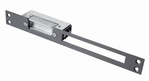 Fecho elétrico para aplicação, em portas de madeira ou metal.